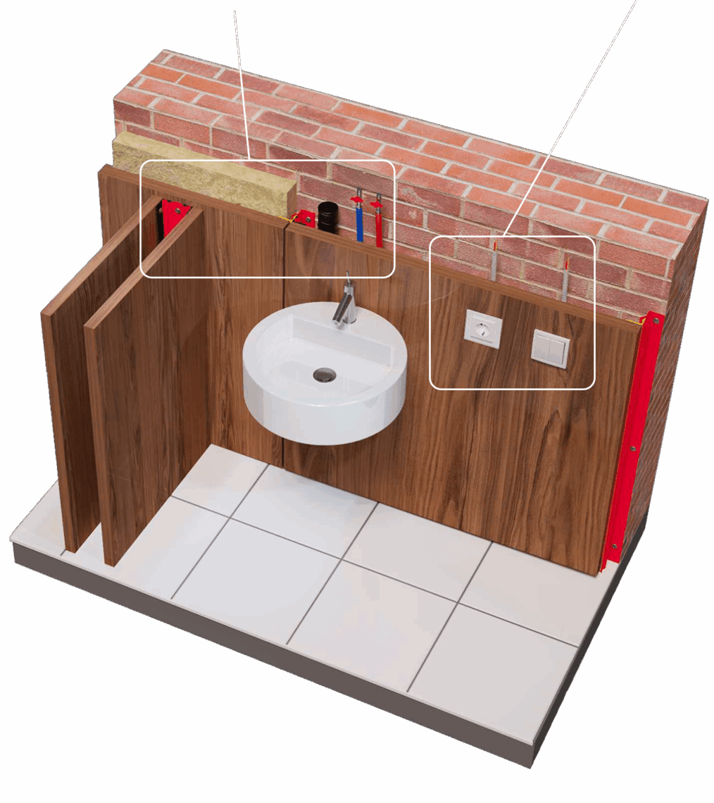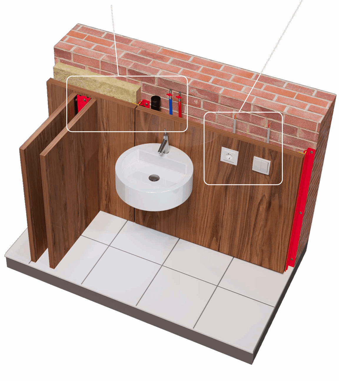 - Возможность добавления инженерных сетей на любом этапе, даже после окончания монтажных работ;